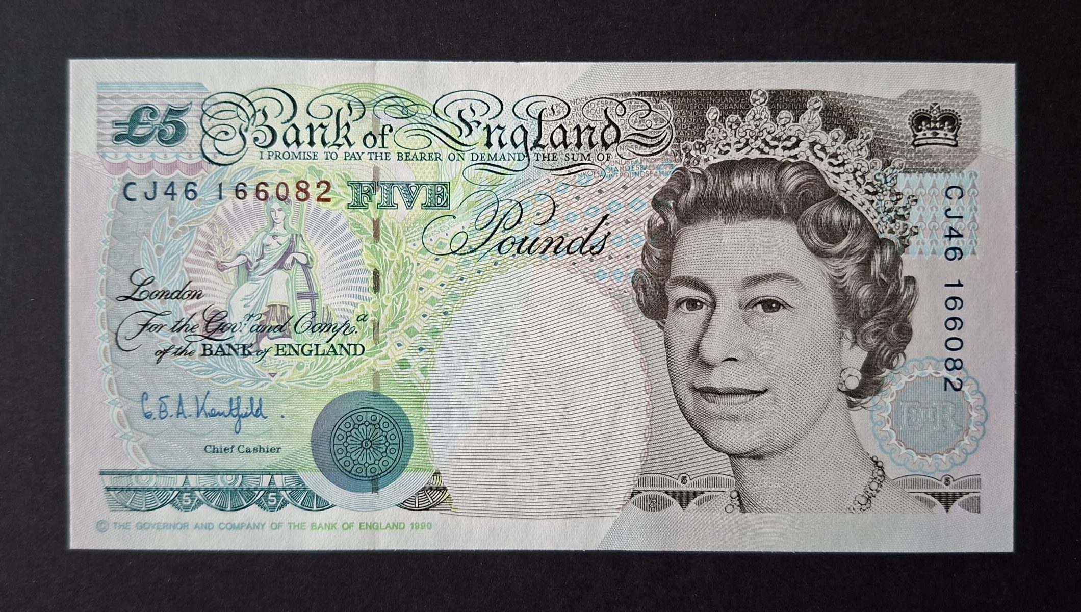 The B364 entered circulation in 1993 and featured the signature of Graham Kentfield. This note was printed on sheet-fed presses in sheets of 40 at Debden in Essex.