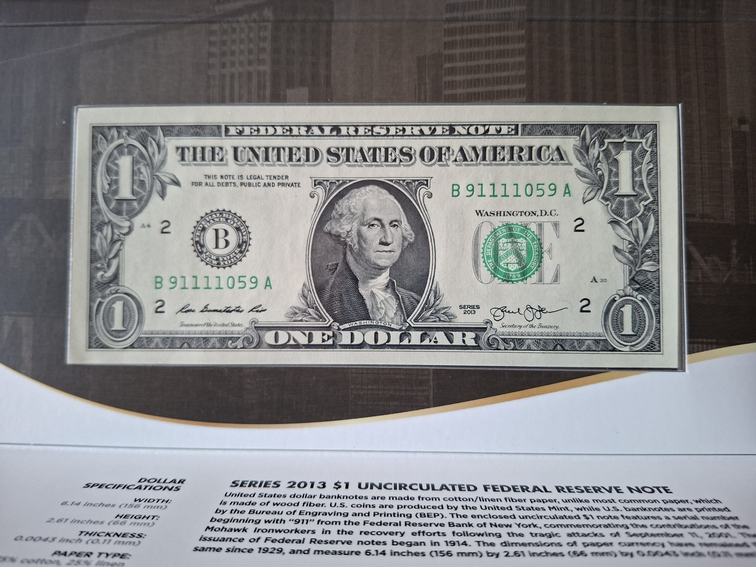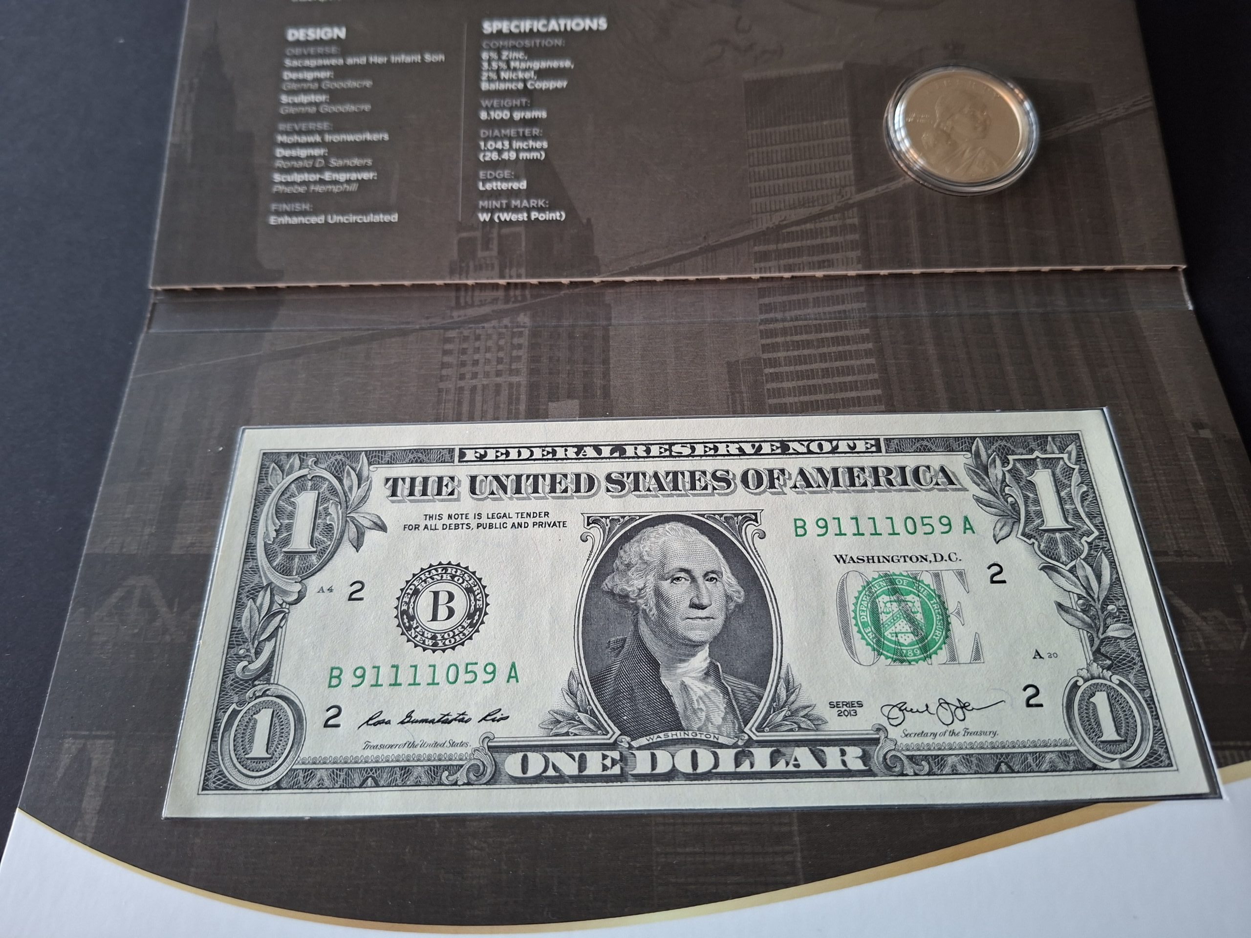 Sold £25.00 Sold SKU: G250224 Categories: All Banknotes, Coins & Bullion, USA Coins & Banknotes Description Description A 2015 United States Mint Mohawk Ironworks $1 note and $1 coin set. Free UK postage. International postage Flat Rate of £10. Related products £20 Royal Bank of Scotland RB106 (AUNC) QETQM0255253. Commemorative note £59.00 Add to cart £5 Lowther B395 (UNC) HD36 910950 £19.00 Add to cart Sold £5 Lowther B393 First Run (UNC) HA01 007547 £29.00 Read more £1 Fisher Treasury Note T34 Last Series (VF+) X1/20 264265 £225.00 Add to cart