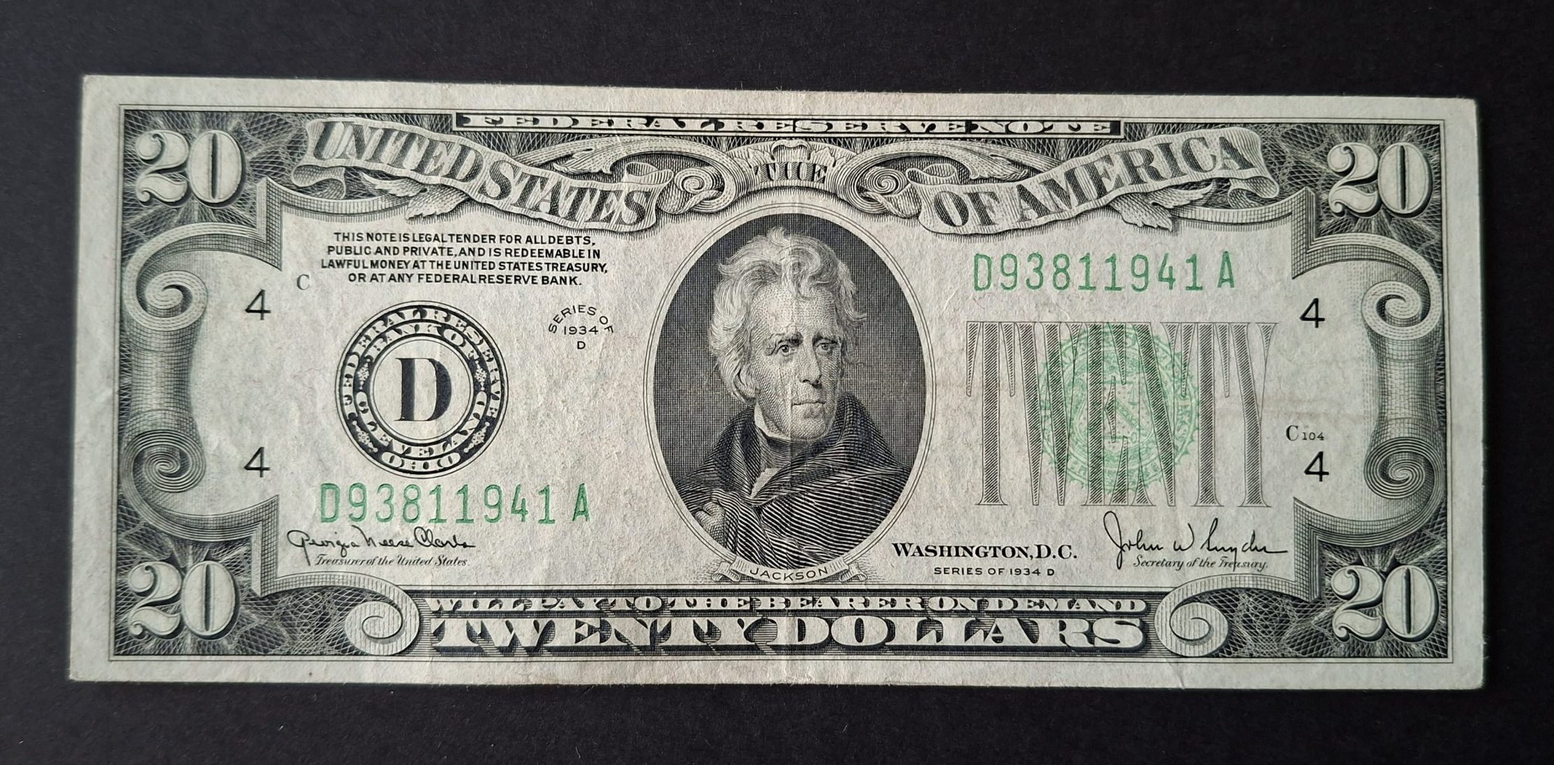 £89.00 1 in stock USA $20 Cleveland 1934D note (VF) D93811941A quantity Add to cart SKU: G250226 Categories: All Banknotes, USA Coins & Banknotes Description Description USA $20 Cleveland 1934D note (VF) D93811941A Free UK postage. International postage Flat Rate of £10. Related products Sold £5 Northern Bank Y2K Prefix P.203b (UNC) Y2K02824 – Low Serial Number £45.00 Read more £5 Salmon B407 (AUNC) LJ08 139545 £19.00 Add to cart £10 Gill B354 Last Series (AUNC) JR21 587327 £39.00 Add to cart Sold £1 Peppiatt B249 (EF) R34E 840443 – Emergency Issue £22.00 Read more